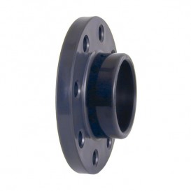 Brida con manguito PVC fabricada por Cepex (UP. 25. FLG). Las bridas son elementos desmontables que permiten unir tuberías entre si, o con los mecanismos necesarios en las instalaciones (válvulas, filtros, contadores, etc.). Disponible en medidas desde D20 hasta D225 mm.