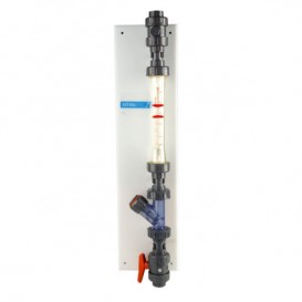 Rotámetros construidos en plástico, con un caudal de 100 a 1000 l/h para el dosificador de 40 l y de 250 a 2500 l/h para el de 60 l; montados sobre un panel de PE; se incluye un prefiltro, una válvula anti-retorno y una válvula de regulación de PVC. Se utiliza para facilitar la regulación del dosificador 40 l y 60 l.