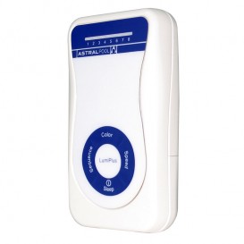 Control remoto LumiPlus que permite comunicarse a distancia con el receptor-modulador LumiPlus código 27818 de AstralPool. El mando a distancia dispone de 8 LEDs indicadores de estado en la parte superior y 4 pulsadores en la parte inferior: COLOR, SEQUENCE, SPEED y ON/SLEEP.