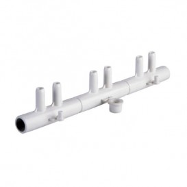 Distribuidor de aire de 6 salidas para embridar a tubería de 10 mm de diámetro interior y encolar a tubería de 15 mm.