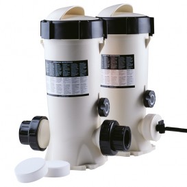 Dosificador de cloro y bromo Dossi-3 fabricado en materiales plásticos inalterables (ABS). Disponible en versiones in-line (para conexión directa a la tubería con enlaces de 1-1/2″) y off-line (para conexión bypass mediante tubo flexible). Capacidad aproximada de 3,5 kg de tabletas. Cierre con doble sistema de seguridad en la tapa. Válvulas de regulación de sencilla utilización. Para piscinas de hasta 60 m3 con cloro y para piscinas de hasta 30 m3 con bromo. Altura: 405 mm.