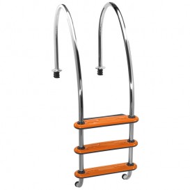 La escalera Komfort 1000 de AstralPool ha sido especialmente diseñada para piscinas con rebosadero. Como principal novedad incorpora un nuevo peldaño de plástico, fijado al pasamanos con un nuevo sistema que no necesita tornillos. Estos peldaños, de plástico antideslizante, disponen de más superficie y son más ergonómicos que los peldaños tradicionales, aportando más seguridad y comodidad. Pasamanos de Ø 43 mm de acero inoxidable AISI-316 modernos y estilizados. Estilo compacto, original y alegre. Disponible con 3 ó 4 peldaños.