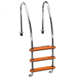 La escalera Komfort 650 de AstralPool es una escalera para piscinas residenciales y públicas con la innovación de un nuevo peldaño de plástico. El peldaño se ha fijado al pasamanos con un nuevo sistema que no necesita ningún tornillo. Los pasamanos en acero inoxidable, con ligero cambio de forma, modernos y estilizados. Peldaño con sistema sándwich. Tiene más superficie y su forma es más ergonómica que los peldaños tradicionales, aportando más seguridad y comodidad que las escaleras convencionales. Estilo compacto, original y alegre. Tubo Ø 43 mm, Inox. AISI-316. Disponible con 3 ó 4 peldaños.