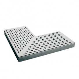 Esquina 90º para rejilla de rebosadero INOX, fabricada en acero inoxidable, con textura antideslizante. Disponible en 4 modelos de diferentes medidas en función del ancho de rejilla utilizado.