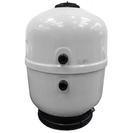 Filtro Aster alto rendimiento AstralPool, laminado en poliéster y fibra de vidrio, y cuya principal característica es una altura de su lecho filtrante de 800 mm, lo que ofrece una mayor calidad de filtración que la de un filtro residencial al aumentar la capacidad de retención de las partículas más pequeñas. Color gris, pie en polipropileno, nueva tapa sin tornillos, tapón para vaciado de agua, manómetro y válvula selectora lateral.