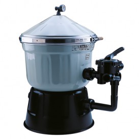 Filtro Clarity de diatomeas AstralPool, fabricado en resina de poliéster y fibra de vidrio, diseñado para ofrecer la máxima calidad de filtración del agua de la piscina. Equipado con manómetro, purga de aire y válvula selectora lateral. Carga de diatomeas no incluida (ver productos relacionados). Velocidad de filtración 4,9 m3/h/m2.