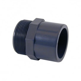 Machón mixto PVC para cementar y roscar macho fabricado por Cepex (UP. 15. SFMT). Los machones mixtos de PVC-U permiten adaptar tuberías de PVC-U a conexiones roscadas. Disponible en medidas desde 16 – 12 x 3/8 hasta 110 – 90 x 4.