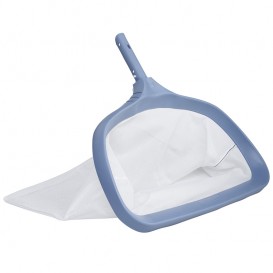Recogehojas de fondo Shark, diseñado para la recogida de hojas u otros elementos del fondo de la piscina. Fabricado en polipropileno de color gris tiburón. La malla, de poliéster, va soldada al cuerpo del recogehojas, lo que asegura una mayor durabilidad. Su forma ancha en la parte inferior maximiza la recogida de suciedad en el fondo.