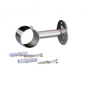 Soporte recto con pletina en acero inox AISI-316 pulido brillante para pasamanos Ø 43 mm. Suministrado con tornillos, junta y tacos de anclaje.